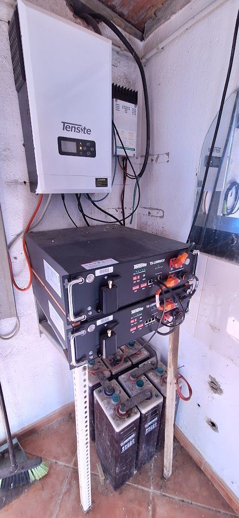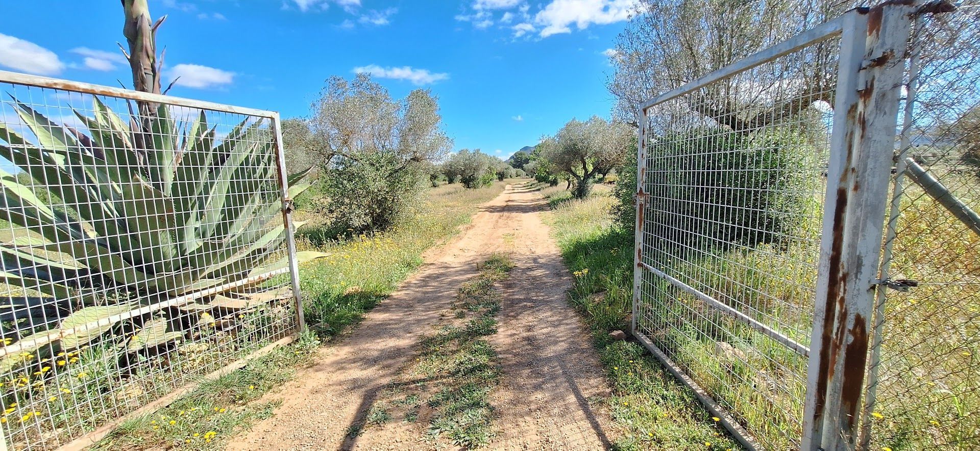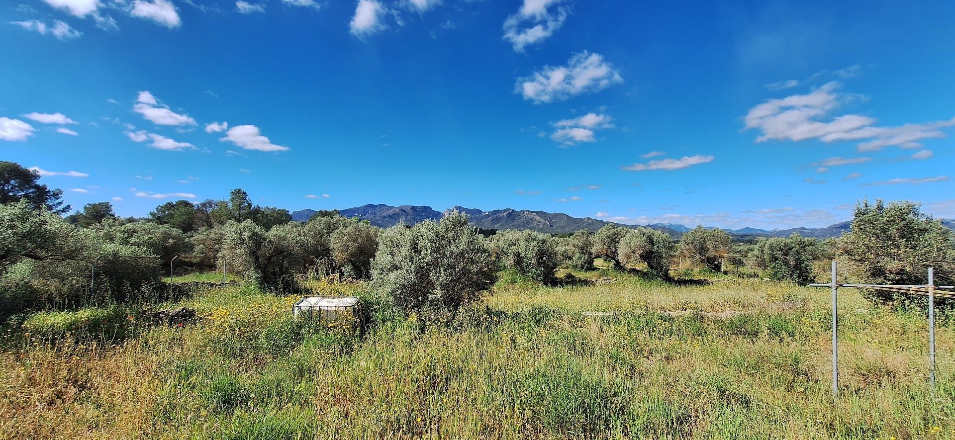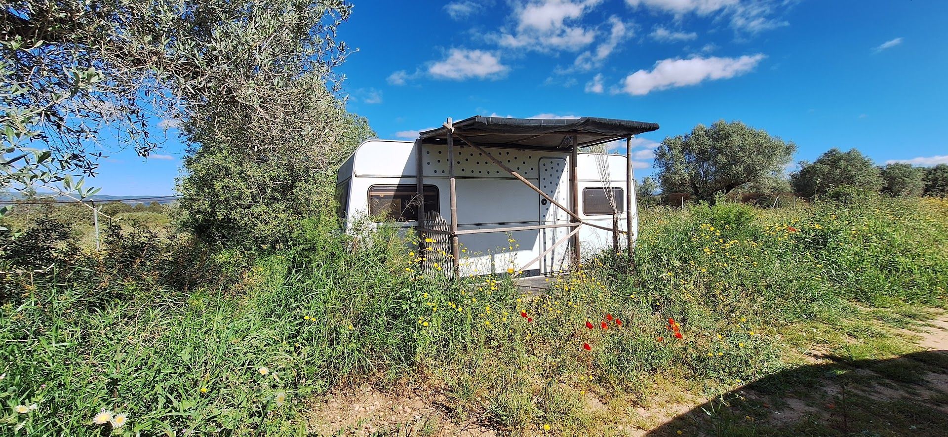 The land 1.8 hectares with olive trees is in need of some work, it has private access and is mostly fenced. There are outbuildings including a large garage and also some old caravans. Electricity is a solar power system installed 2 years ago. Water is connected from the local system of irrigation and there is also a cisterna for rain water.
