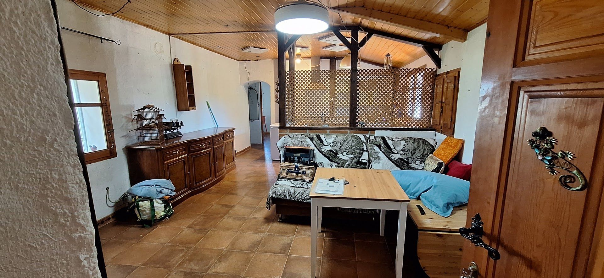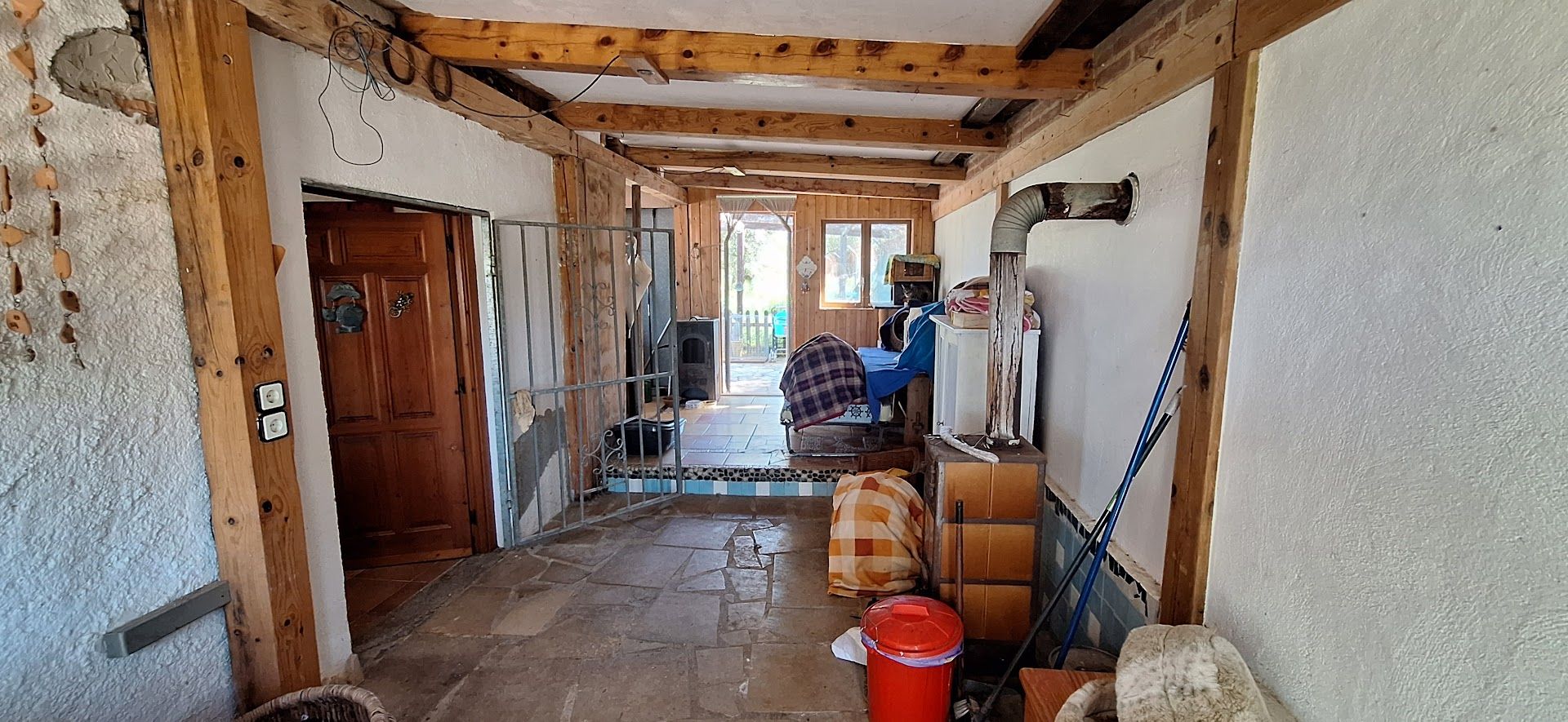 The property needs some attention but it is ready for living and consists of a 2 bedroom house on one level with bathroom, open plan lounge with wood burner and kitchen. There is a closed covered terrace used for extra space also with wood burning stove.