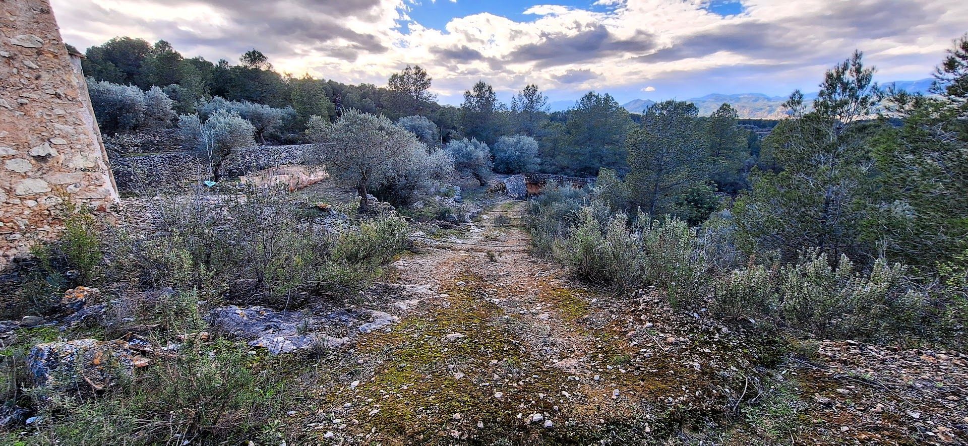Pretty finca with traditional stone casita for restoration, approx 70m2 over 2 floors. Land 2.5 hectares (25,000m2 or 6 acres) with many stone wall terraces on diffferent levels. The finca has natural woodland at the entrance to the finca, excellent asphalt access to the property from the village, stunning views of the Ebro valley, mountains and surrounding countryside. Water is connected from the local irrigation system.